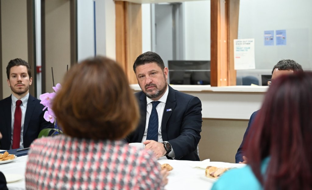 Ο Περιφερειάρχης Αττικής μετέβη επίσης στην ελληνική πρεσβεία στο Λονδίνο, όπου είχε συνομιλίες με τον Πρέσβη Γιάννη Τσαούση, ενώ συναντήθηκε και με εκπροσώπους από 12 ομογενειακές κοινότητες, τα μέλη των οποίων ζουν και δραστηριοποιούνται στο Ηνωμένο Βασίλειο. Μεταξύ αυτών συγκαταλέγονταν ο Σύλλογος Κωνσταντινουπολιτών, η τοπική Ένωση Μακεδόνων, η Ένωση Ποντίων, η Ένωση Πελοποννησίων, η Ένωση Ιονίων Νήσων, η Ένωση Ελλήνων Τραπεζιτών, η Ένωση Ελλήνων Επαγγελματιών Λονδίνου, η Ελληνική Αρχαιολογική Ένωση και η Ένωση Ελλήνων Ιατρών Ηνωμένου Βασιλείου. Η συνάντηση έγινε παρουσία της αναπληρώτριας Πρέσβεως Ιωάννας Κριεμπάρδη και του Έλληνα Προξένου, Χρήστου Γούλα.