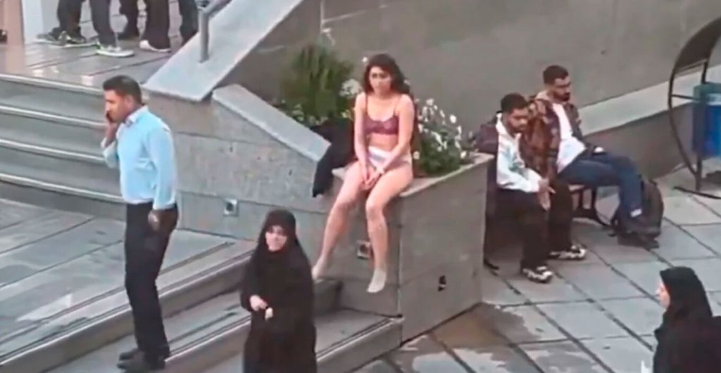 Σε βίντεο που έγιναν σύντομα viral, η γυναίκα διακρίνεται να περπατάει αργά μπροστά από το πανεπιστήμιο φορώντας τα εσώρουχά της, προτού την μεταφέρουν με τη βία σε ένα αυτοκίνητο άνδρες με πολιτικά.