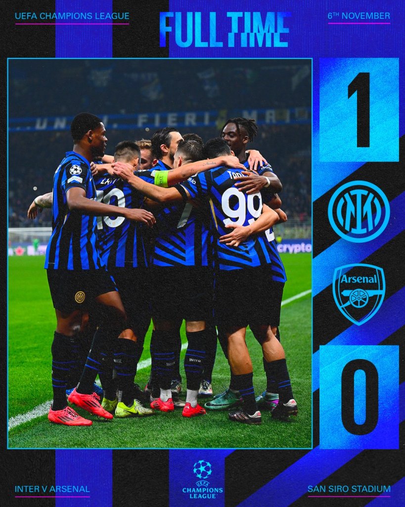 Η Ίντερ πέτυχε σπουδαία νίκη με 1-0 επί της Άρσεναλ, της γκρέμισε το αήττητο και ανέβηκε στους 10 βαθμούς. Στους 7 έμεινε η Άρσεναλ.
