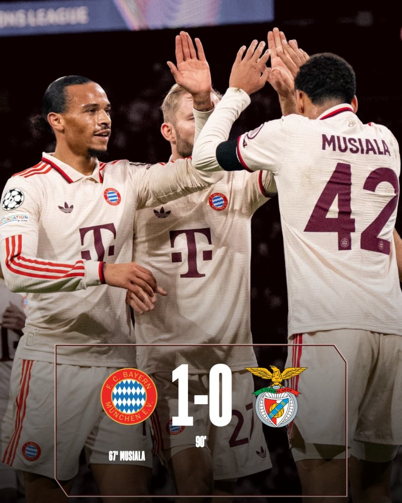 Ανάσα για την Μπάγερν, η οποία μετά από δύο σερί ήττες, κέρδισε με 1-0 την Μπενφίκα και έφτασε τους 6 βαθμούς. Φουλ άμυνα σε όλο το ματς από τους «Αετούς» της Λισαβόνας» που έχουν επίσης έξι βαθμούς.