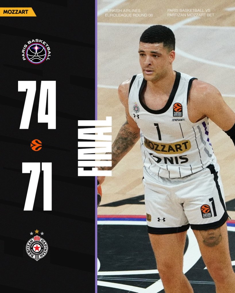 Η Παρί φιλοξένησε την Παρτιζάν για την 8η αγωνιστική της Euroleague, σε ένα παιχνίδι που μετατράπηκε σε «θρίλερ». Τελικά, οι γηπεδούχοι βρήκαν μεγάλα καλάθια στα τελευταία λεπτά και μπόρεσαν να πανηγυρίσουν τη νίκη με 74-71.