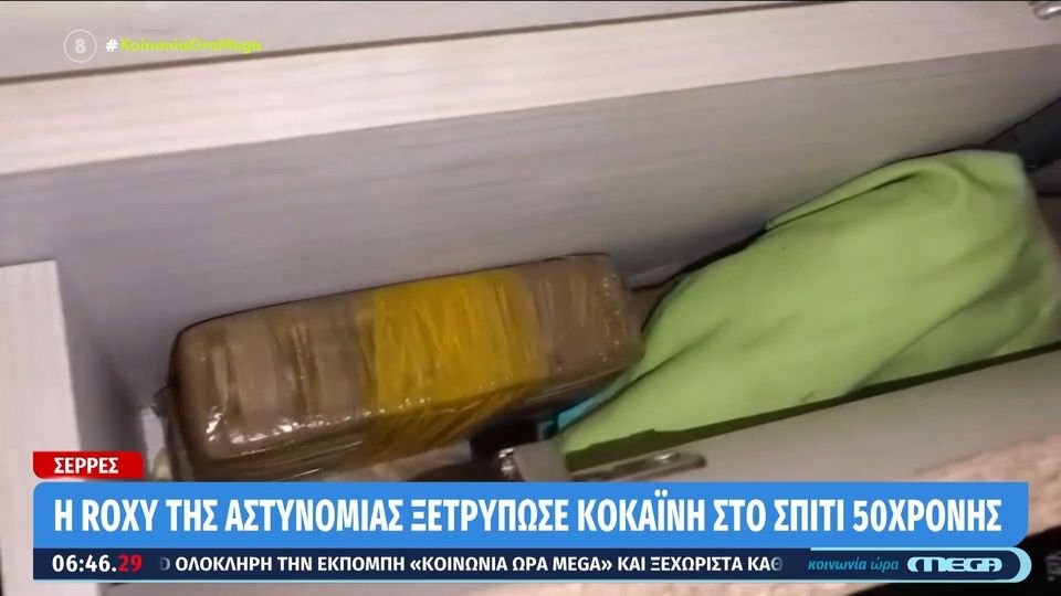 Με τη βοήθεια της Roxy, αστυνομικού σκύλου, οι άνδρες του Τμήματος Δίωξης Ναρκωτικών της Υποδιεύθυνσης Σερρών ξετρύπωσαν ναρκωτικά απο το σπίτι μιας 50χρονης από τη Ρωσία.