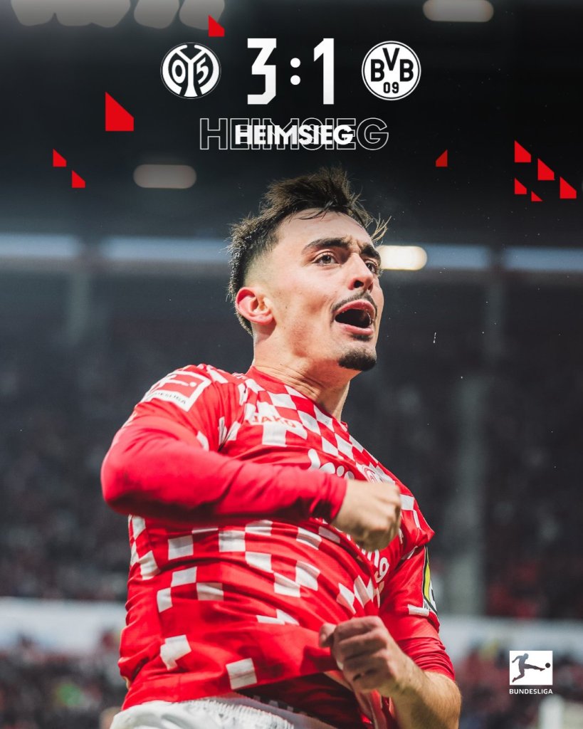 Νέα ήττα για την Μπορούσια Ντόρτμουντ αυτή τη φορά στην έδρα της Μάιντζ με 3-1. Με δέκα έμειναν από νωρίς οι φιλοξενούμενοι μετά την απευθείας κόκκινη στον Τσαν στο 27’. Άλλη ομάδα εκτός έδρας η Ντόρτμουντ. Πρώτη νίκη εντός για τη Μάιντζ