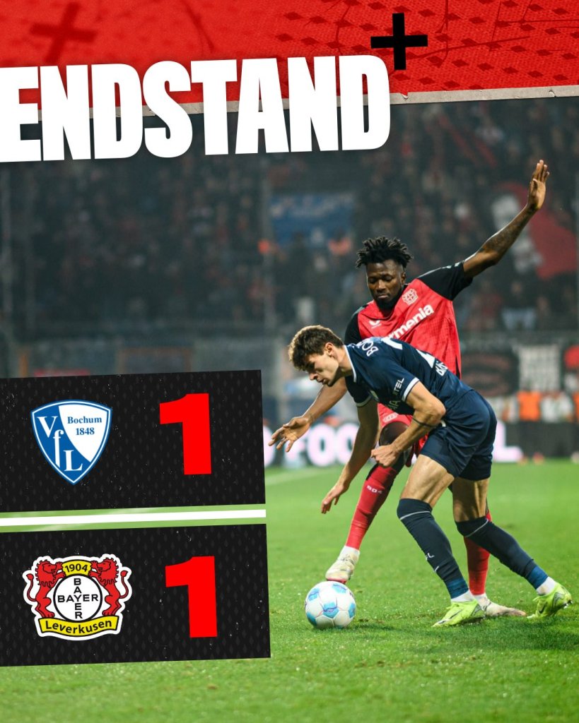 Σοκ στο τέλος για τη Λεβερκούζεν η οποία για ακόμα μία φορά πληγώθηκε σε δικό της ματς και έμεινε στο 1-1 με την ουραγό Μπόχουμ.