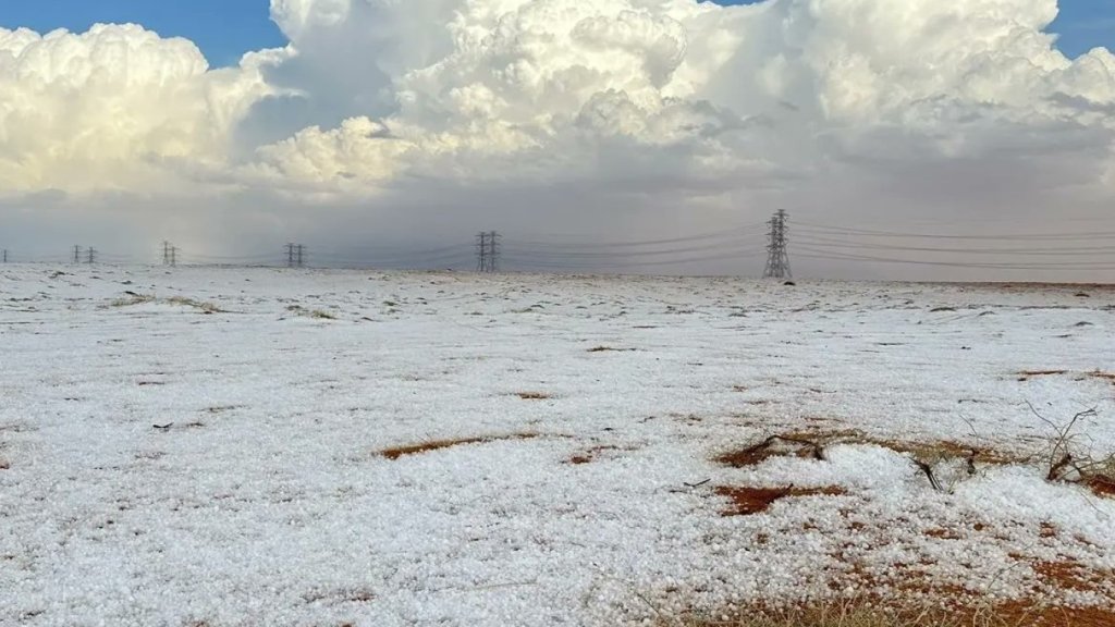 Τις προηγούμενες ημέρες, η περιφέρεια Al-Jawf στα βόρεια της Σαουδικής Αραβίας, «ντύθηκε στα λευκά» λόγω χιονόπτωσης, που προκλήθηκε από έντονη βροχή και χαλάζι.