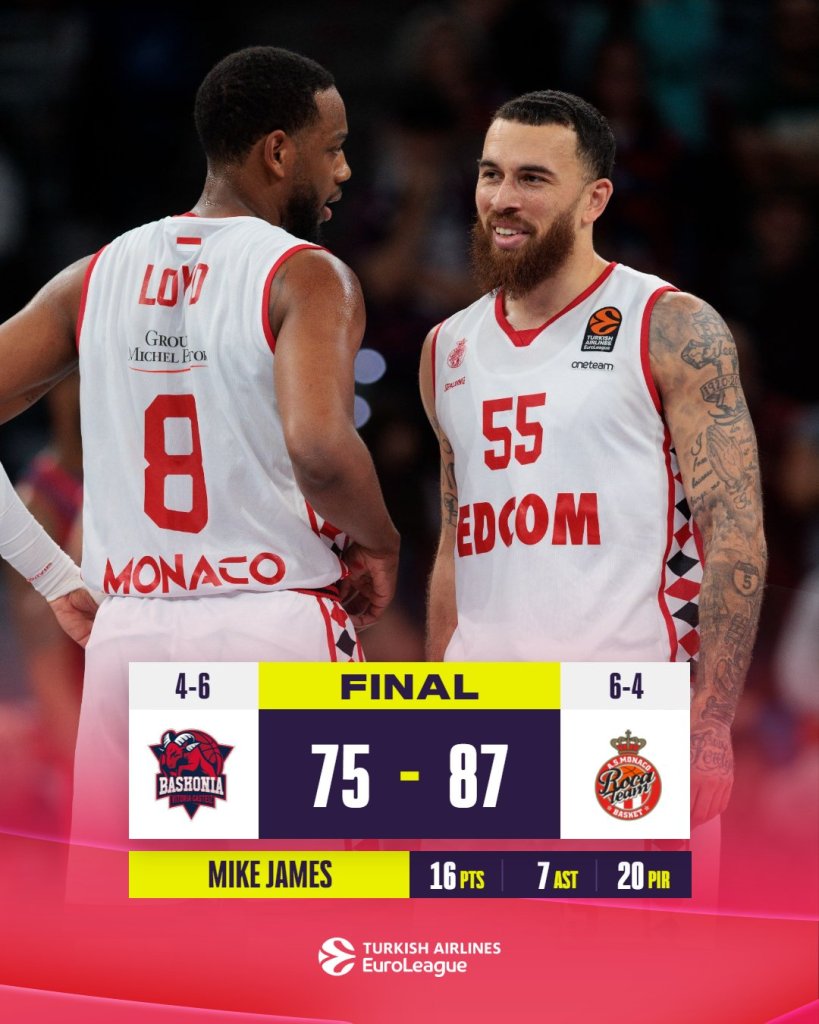 Η Μονακό πήγε για το χαρακίρι της σεζόν κόντρα στην Μπασκόνια, αλλά με τους Τζέιμς και Οκόμπο σε ρόλο...Μπάτμαν και Ρόμπιν πέρασε από τη Βιτόρια με 87-75.