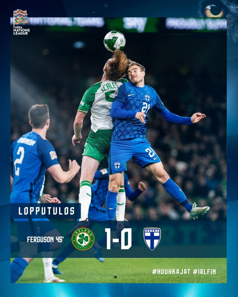 Η Ιρλανδία επικράτησε με 1-0 της Φινλανδίας, την υποβίβασε και τη στέλνει σε ματς, ουσιαστικά αδιάφορη.