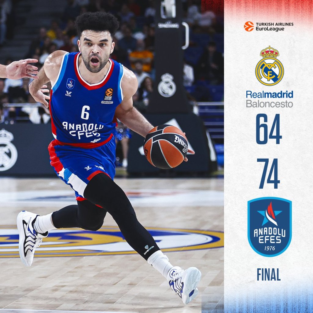 Σπουδαίο διπλό για την Αναντολού Εφές στη Μαδρίτη με 74-64, με τη Ρεάλ πάντως να επιστρέφει από το -27 που βρέθηκε στα τέλη της δεύτερης περιόδου.