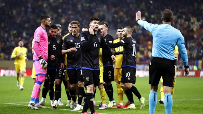 Χάος στο ματς της Ρουμανίας με το Κόσοβο. Η αναμέτρηση βρισκόταν στο 90+5’ χωρίς να υπάρχει σκορ. Η λευκή ισοπαλία βόλευε τους Ρουμάνους και ξαφνικά οι παίκτες του Κοσόβου αποχώρησαν από τον αγωνιστικό χώρο, διαμαρτυρόμενοι για αντεθνικά και ρατσιστικά συνθήματα. Ο δανός ρέφερι, Μόρτεν Κρογκ πήρε και τους Ρουμάνους και αποχώρησαν για τα αποδυτήρια όπου υπήρξαν έντονες διαβουλεύσεις.