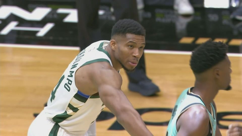 Το ημίχρονο ολοκληρώθηκε με τον Έλληνα φόργουορντ να έχει 12 πόντους, 9 ασίστ και 8 ριμπάουντ και τους Μπακς να προηγούνται 59-63.