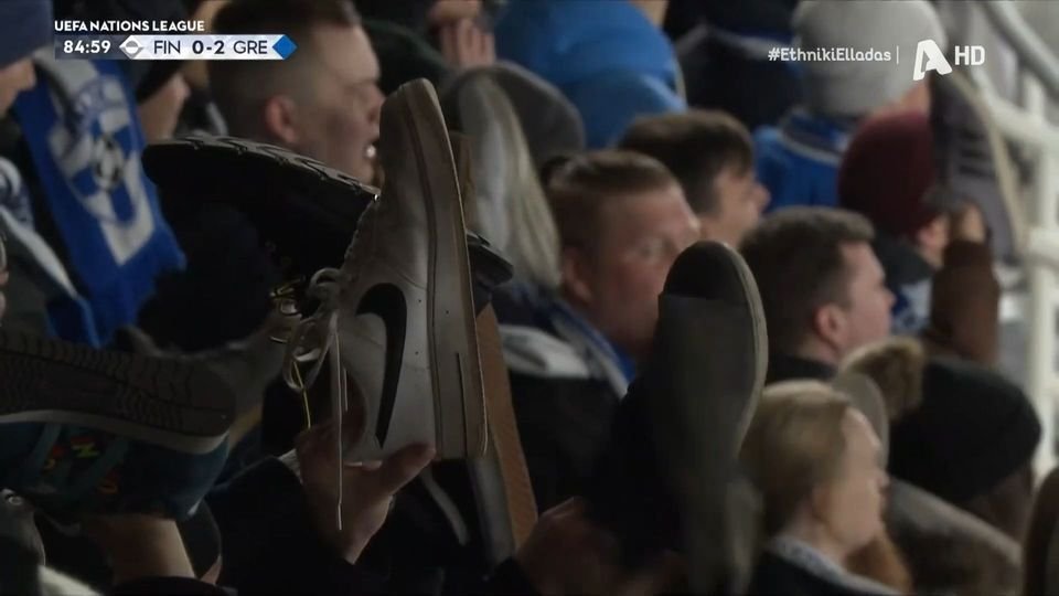 Έβγαλαν... τα παπούτσια τους οι Φινλανδοί στις κερκίδες του σταδίου (VIDEO)