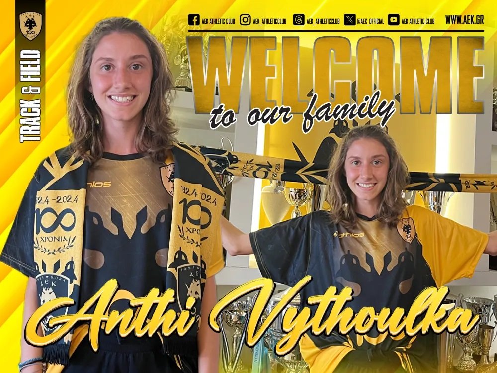 Η ΑΕΚ βρίσκεται στην πολύ ευχάριστη θέση να ανακοινώσει την έναρξη της συνεργασίας της με την Ανθή Βυθούλκα. Η αθλήτρια είναι γεννημένη στις 12 Ιουλίου 2004 και θα ενισχύσει το τμήμα στίβου της ΑΕΚ.