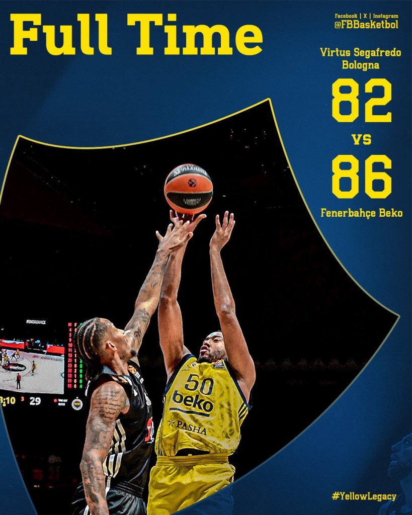 Παραμονή στην κορυφή για τη Φενέρμπαχτσε που πέρασε χάρη σε ανατροπή από το -10 από την Μπολόνια. Μεγάλα τρίποντα νίκης από Γκούντουριτς και Χέις-Ντέιβις που υπέγραψαν το τελικό 82-86.