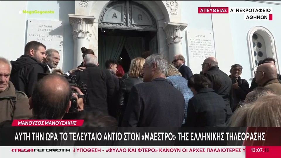 Συγγενείς, φίλοι και συνάδελφοί του Μανούσου Μανουσάκη βρέθηκαν στο Α' Νεκροταφείο για να πουν το τελευταίο «αντίο» στον σπουδαίο σκηνοθέτη.