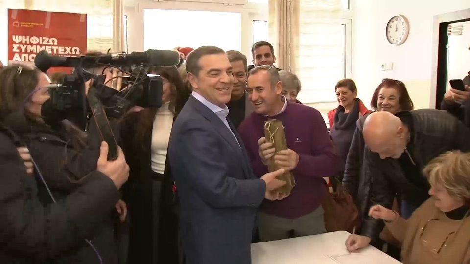 Την ώρα που έφτασε στο εκλογικό τμήμα, ο Αλέξης Τσίπρας έγινε δεκτός με χειροκροτήματα και ενθουσιασμό από τον κόσμο που ήταν συγκεντρωμένος στο εκλογικό κέντρο.