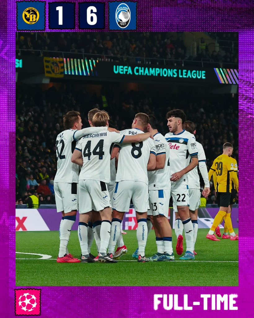 Μια Αταλάντα να την πιεις στο ποτήρι, πέρασε με 6-1 από την έδρα της Γιουνγκ Μπόις κι έχει ήδη 11 βαθμούς και γερές βάσεις πρόκρισης. Στο μηδέν οι Ελβετοί.