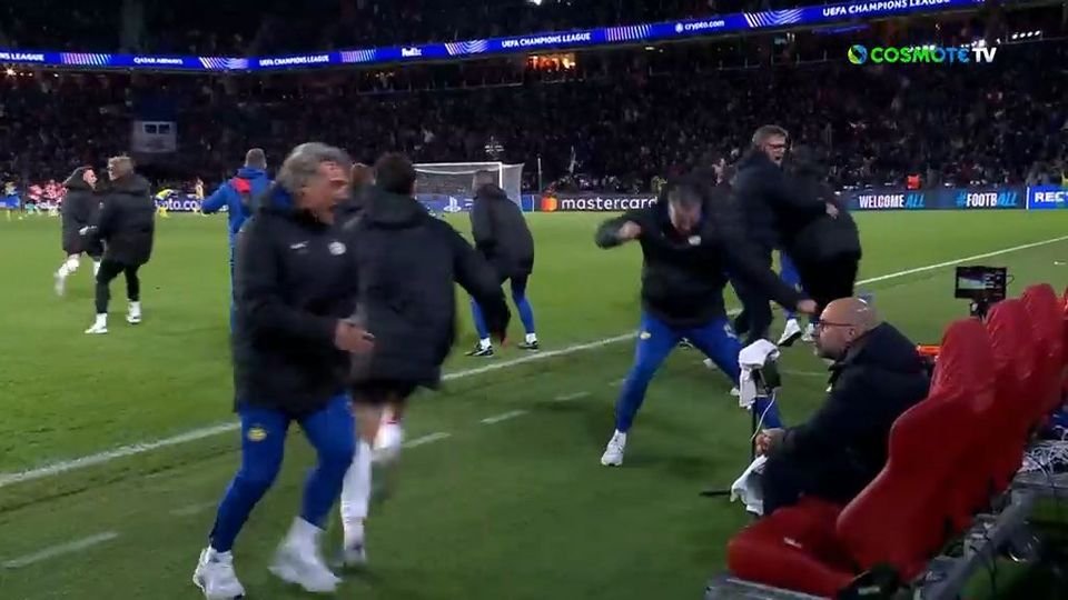 Ο προπονητής της Αϊντχόφεν έμεινε καθισμένος στον πάγκο του, χωρίς να αντιδράσει καθόλου, δείχνοντας να μην έχει κουράγιο να πανηγυρίσει.