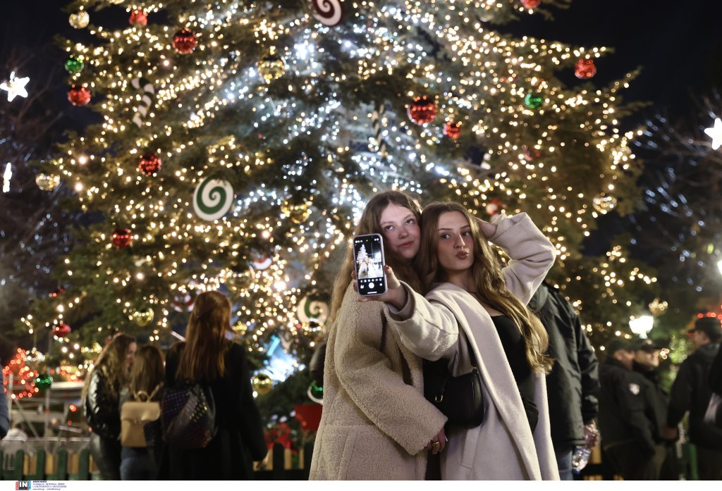 Πλήθος κόσμου και τουριστών βρέθηκαν στο κέντρο της Αθήνας, μπροστά στη Βουλή, προκειμένου να θαυμάσουν το χριστουγεννιάτικο έλατο.