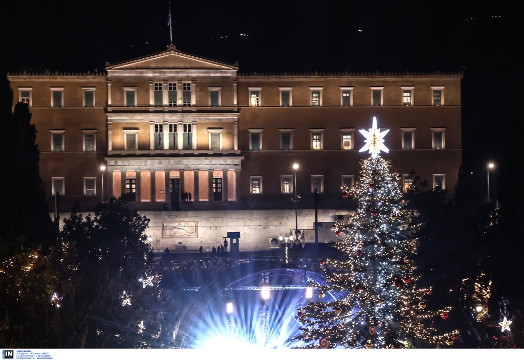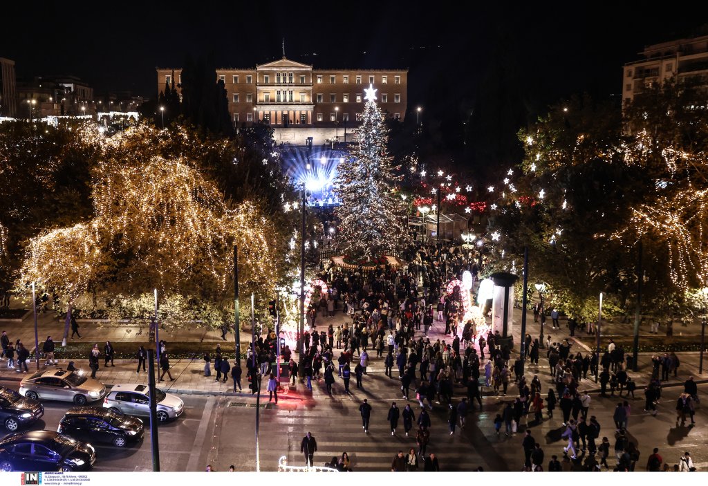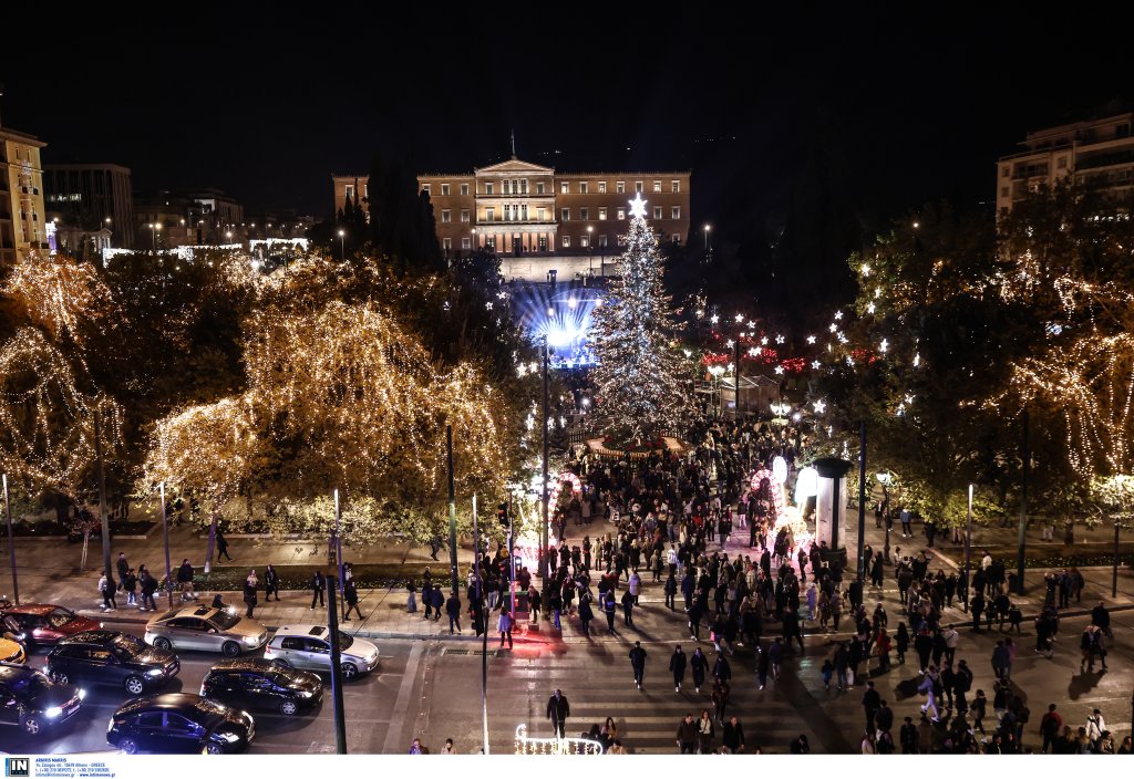 Η πλατεία Συντάγματος «φόρεσε» τα γιορτινά της με την φωταγώγηση του χριστουγεννιάτικου δέντρου.
