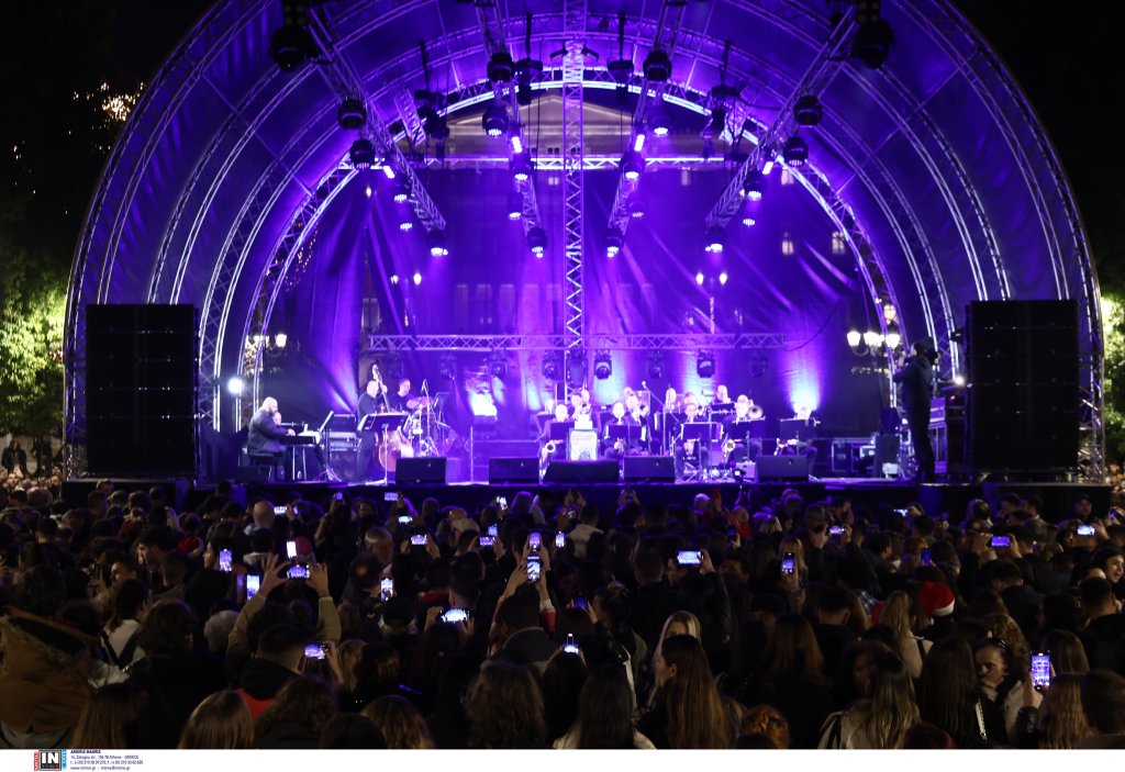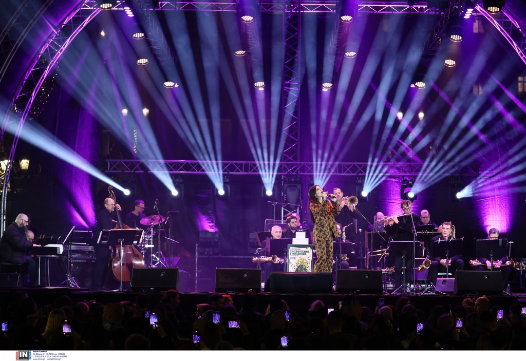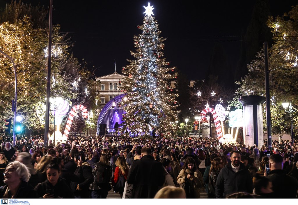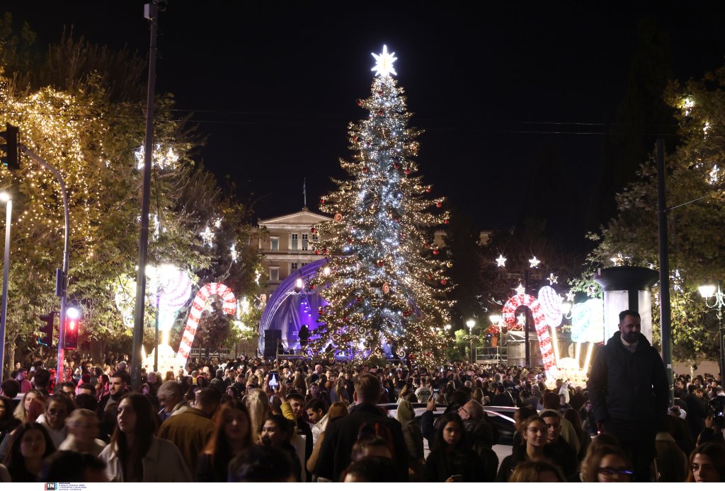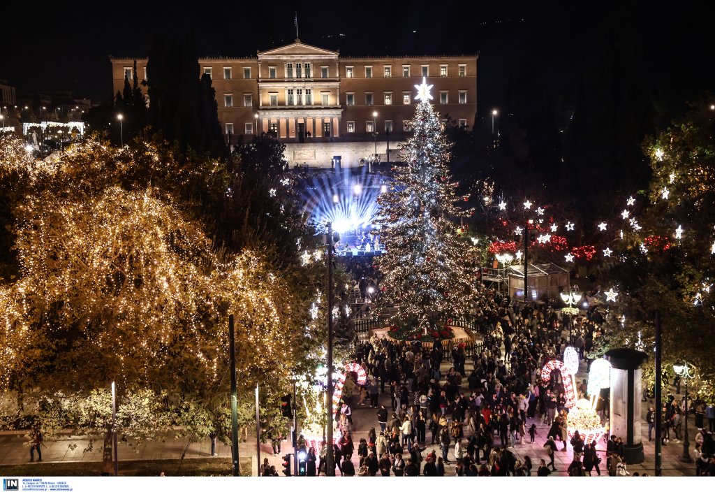 Το έλατο 20 μέτρων έφτασε στην Αθήνα από τον Ταξιάρχη Χαλκιδικής. Την εκδήλωση παρουσίασε η Νάνσυ Ζαμπέτογλου και ο Θανάσης Αναγνωστόπουλος ενώ η Νεφέλη Φασουλή και η Athens Big Band «χρωματίζουν» την πλατεία με χριστουγεννιάτικες μελωδίες.
