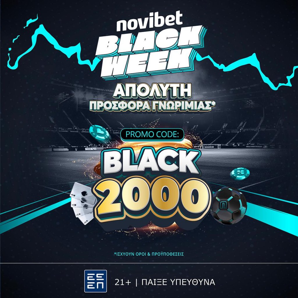 Η Novibet συνεχίζει να πρωτοπορεί στη δημιουργία μοναδικών προσφορών* και προσφέρει μία ολοκληρωμένη εμπειρία παιχνιδιού στο κοινό και στο πλαίσιο της Black Friday!