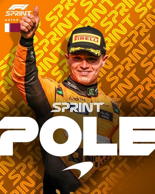 Το Κατάρ είναι μια πίστα που ταιριάζει στην McLaren κι αυτό φάνηκε στις κατατακτήριες δοκιμές για το Sprint Race: ο Λάντο Νόρις πήρε την pole position στο sprint race (16.00 Σάββατο), αφήνοντας πίσω του, τους Τζορτζ Ράσελ(63 χιλιοστά του δευτερολέπτου) και Όσκαρ Πιάστρι. Στο 4-5 οι Ferrari με Λεκλέρ και Σάινθ, στην 6η θέση ο τέσσερις φορές παγκόσμιος πρωταθλητής Μαξ Φερστάπεν. Την δεκάδα συμπληρώνουν οι Χάμιλτον, Γκασλί, Χούλκενμπεργκ και Λόσον. Θυμίζουμε πως εάν η Mclaren καταφέρει να πάρει 21 πόντους παραπάνω απο την Ferrari θα κατακτήσει το Πρωτάθλημα Κατασκευαστών.