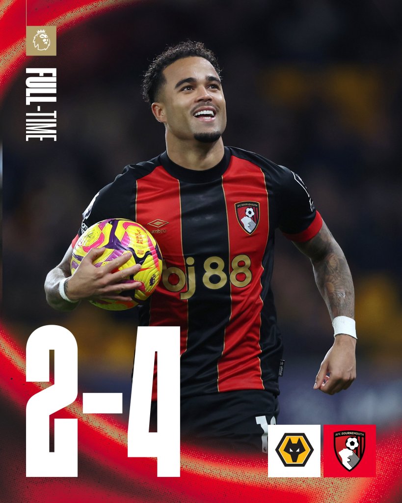 Διπλό-οξυγόνο για την Μπόρνμουθ, η οποία πέρασε με 4-2 από την έδρα της Γουλβς και βρέθηκε στη δεκάδα. Πισωγύρισμα για τους «λύκους» που βρίσκονται εντός επικίνδυνης ζώνης.