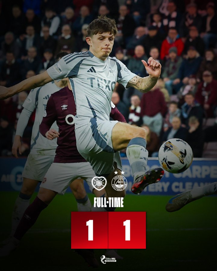Λίγες μέρες μετά από το 3-3 με τη Χιμπέρνιαν, η Αμπερντίν βρέθηκε, ξανά, στο Εδιμβούργο, αυτή τη φορά για να αντιμετωπίσει τη Χαρτς. Για δεύτερη φορά, μέσα σε σύντομο χρονικό διάστημα, η Αμπερντίν άφησε βαθμούς, φέρνοντας 1-1. Αποτέλεσμα, το οποίο τη φέρνει τέσσερις πόντους μακριά από τη πρωτοπόρο Σέλτικ.