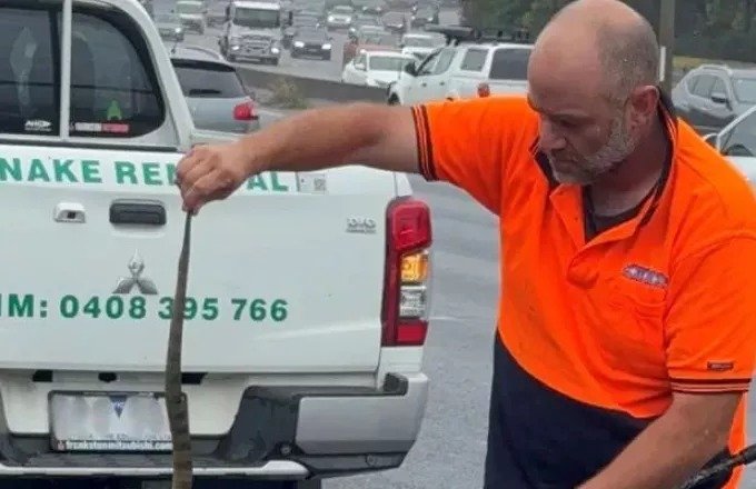 Είπε ότι δέχεται έξι έως 12 τηλεφωνήματα το χρόνο για την απομάκρυνση φιδιών από αυτοκίνητα, αλλά αυτή ήταν η πρώτη φορά που κλήθηκε σε αυτοκινητόδρομο.