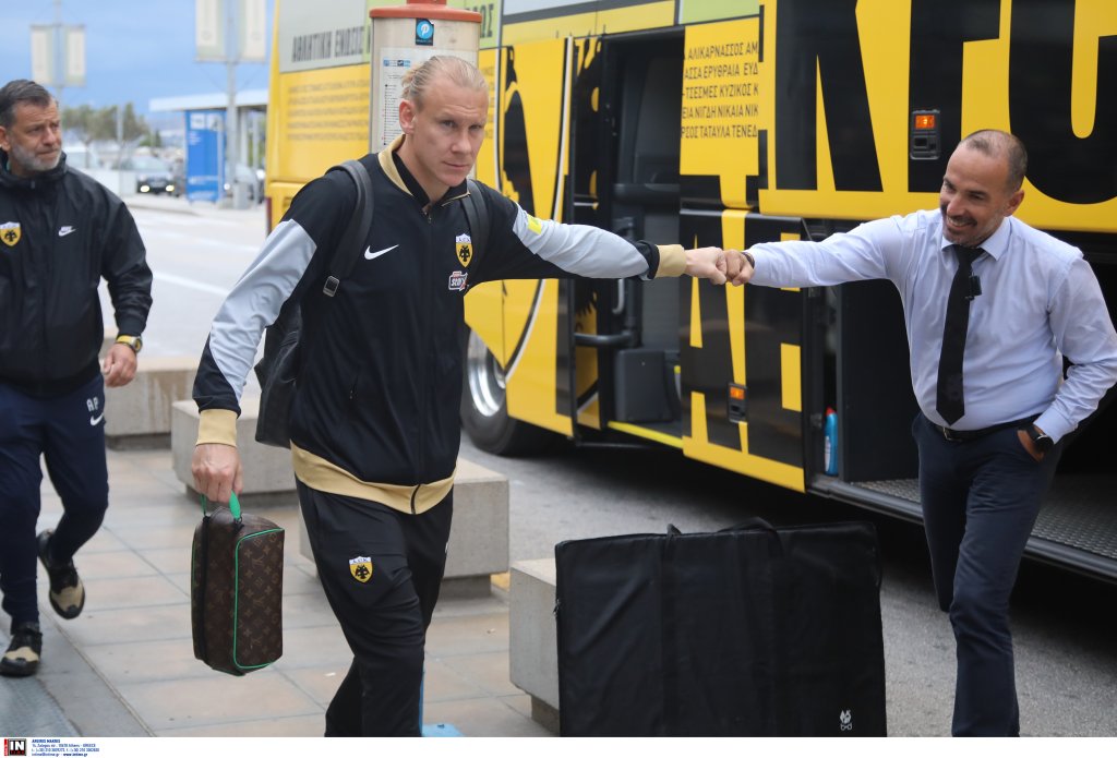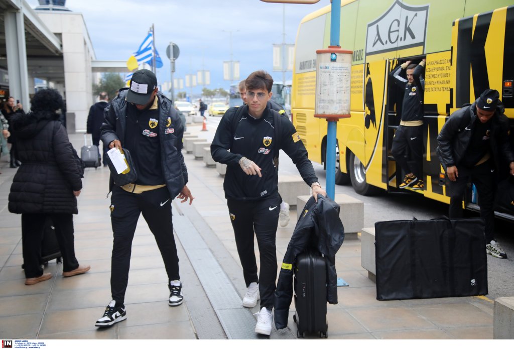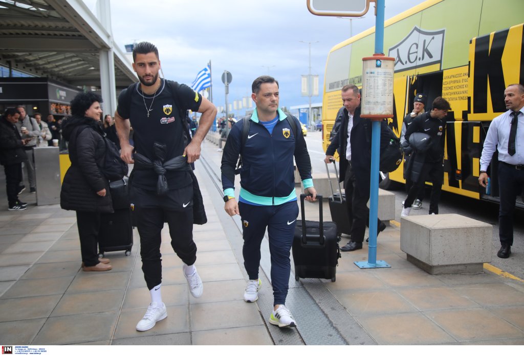Για Θεσσαλονίκη πέταξε η ΑΕΚ όπου αύριο Τρίτη (3/12 – 19:30) θα αντιμετωπίσει τον Άρη για το Κύπελλο. Η αποστολή της ΑΕΚ έφτασε στο αεροδρόμιο «Ελευθέριος Βενιζέλος» με το πούλμαν της ομάδας και το κλίμα ήταν εξαιρετικό. Χαμόγελα, πειράγματα και φωτογραφίες με φίλους της ομάδας. Δείτε εικόνες από την αναχώρηση.