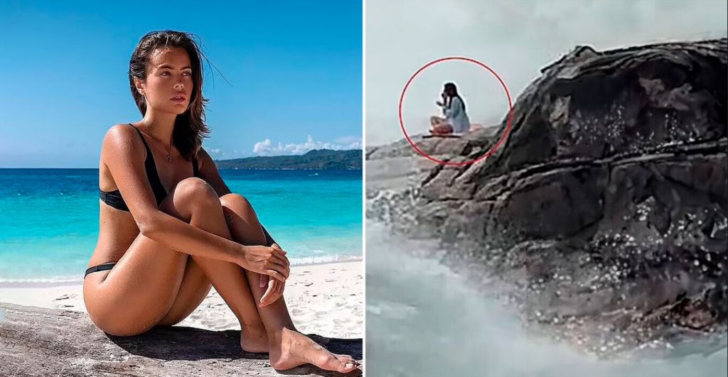 Στο βίντεο φαίνεται η 24χρονη από τη Ρωσία να κάνει γιόγκα πάνω σε έναν μεγάλο βράχο, όταν ξαφνικά ένα από τα μανιασμένα κύματα την παρέσυρε.