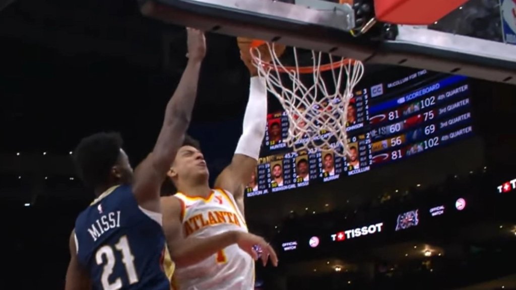 Στην αναμέτρηση με τους Νιου Ορλινς Πέλικανς, ο Τζέιλεν Τζόνσον των Ατλάντα Χοκς... περπάτησε στον άερα και, με σπάσιμο της μέσης, κάρφωσε την μπάλα στο αντίπαλο καλάθι.