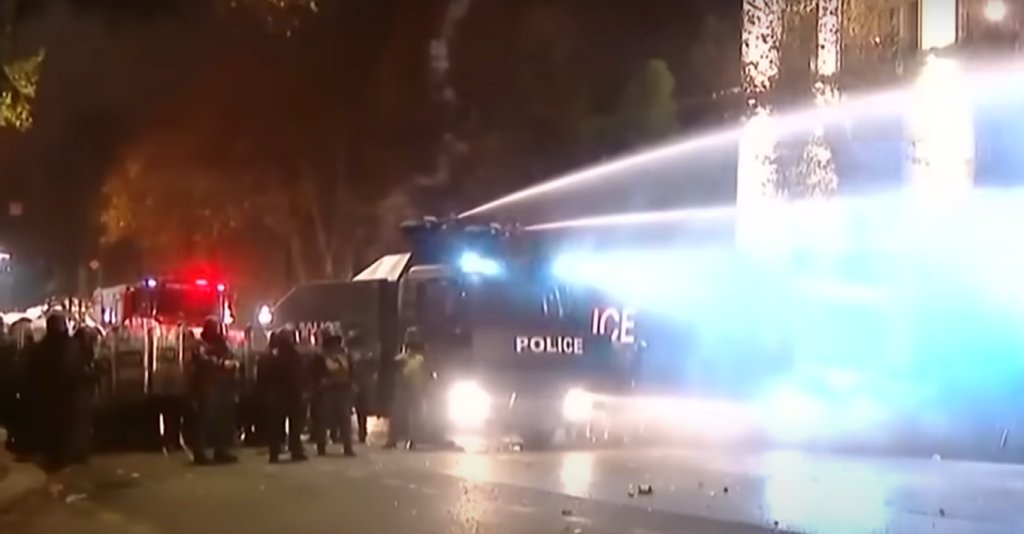 Τα κανόνια νερού σκόρπισαν πρόσκαιρα πανικό στο συγκεντρωμένο πλήθος, προτού διαδηλωτές εξαπολύσουν επίθεση με κροτίδες εναντίον των δυνάμεων ασφαλείας.