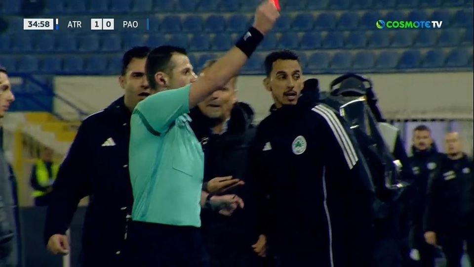 Έντονες διαμαρτυρίες προς τον διαιτητή και κόκκινη στον πάγκο του Παναθηναϊκού (VIDEO)