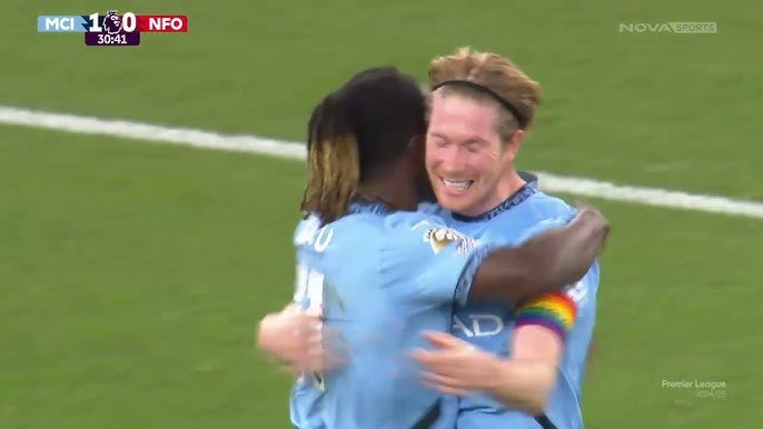 Μετά από οκτώ απανωτά αρνητικά αποτελέσματα, σε πρωτάθλημα και Champions League, η Μάντσεστερ Σίτι πανηγύρισε, ξανά, νίκη, έπειτα από 39 ημέρες. Στο ETIHAD, η πρωταθλήτρια επικράτησε 3-0 της Νότιγχαμ Φόρεστ, με τον Ντε Μπρόινε να έχει γκολ και ασίστ. Στο 8ο λεπτό, ο Βέλγος πάσαρε στον Μπερνάρντο Σίλβα, που άνοιξε το σκορ και, στο μισάωρο, η Νότιγχαμ έχασε μεγάλη ευκαιρία για την ισοφάριση. Δευτερόλεπτα αργότερα, ο Ντε Μπρόινε έκανε το 2-0. Στα πρώτα λεπτά της επανάληψης, οι φιλοξενούμενοι πίεζαν και, κόντρα στη ροή του ματς, η Σίτι βρήκε και τρίτο γκολ, με τον Ντοκού να διαμορφώνει το τελικό 3-0, στο 57ο λεπτό.
