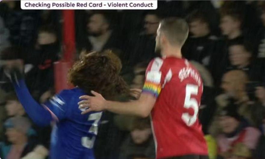 Ο διαιτητής Χάρινγκτον δεν αντιλήφθηκε την ενέργεια του Άγγλου αμυντικού, αλλά, ο VARίστας τον ενημέρωσε, ο ρέφερι είδε τη φάση στο βίντεο και απέβαλε τον παίκτη της Σαουθάμπτον.