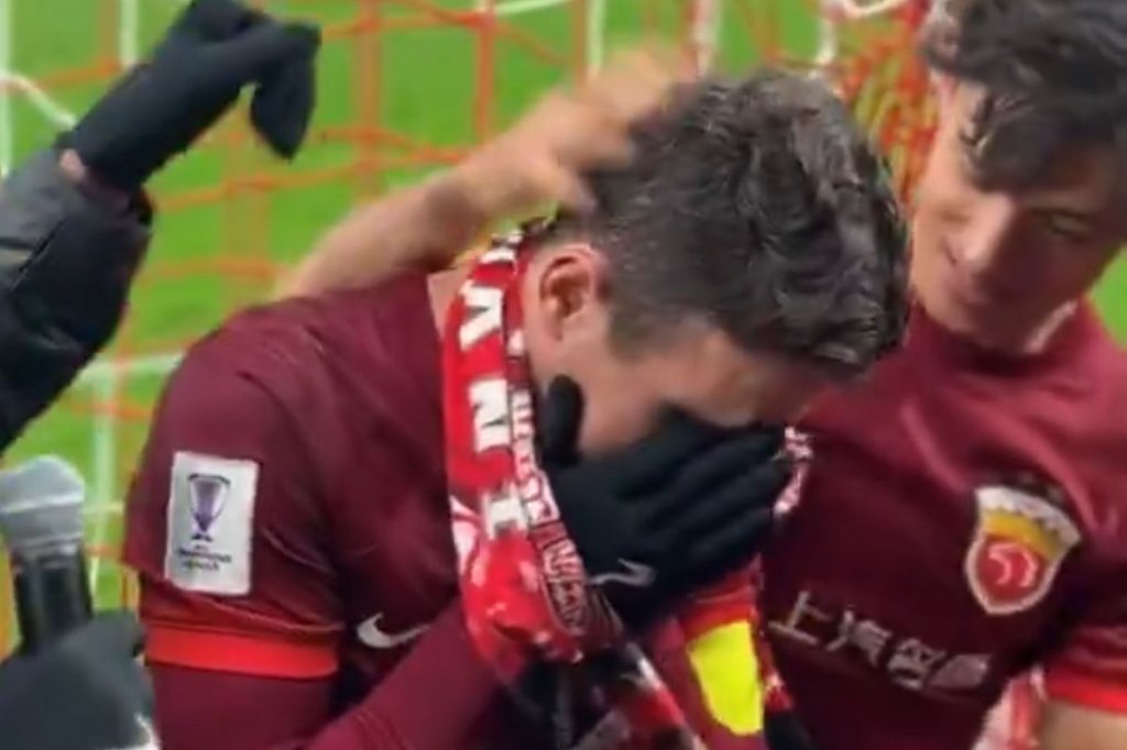 33-year old Oscar is moved to tears in front of the Shanghai supporters as they ask him to stay at the club.