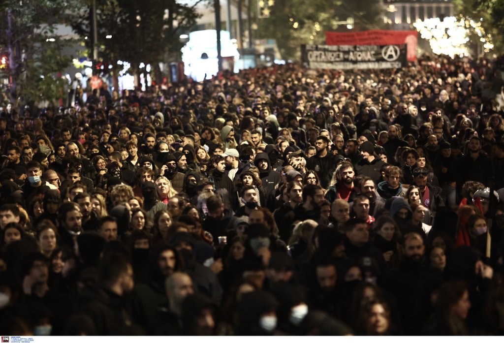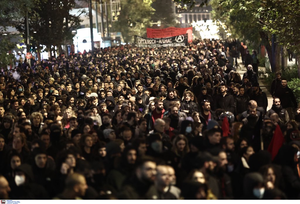Στο σημείο έχουν συγκεντρωθεί περισσότερα από 5.000 άτομα, ενώ οι αστυνομικές δυνάμεις είναι επί ποδός και στην ευρύτερη περιοχή έχουν αναπτυχθεί σχεδόν 5.000. Ελικόπτερο και drone μεταδίσουν συνεχώς εικόνες στο Κέντρο Επιχειρήσεων της ΓΑΔΑ, έχουν επιστρατευτεί και οι Αύρες σε περίπτωση που χρειαστούν, αν τυχόν υπάρξουν επεισόδια. Αυστηρή είναι η παρουσία της αστυνομίας, με ομάδες δράσης και εντός των Εξαρχείων.