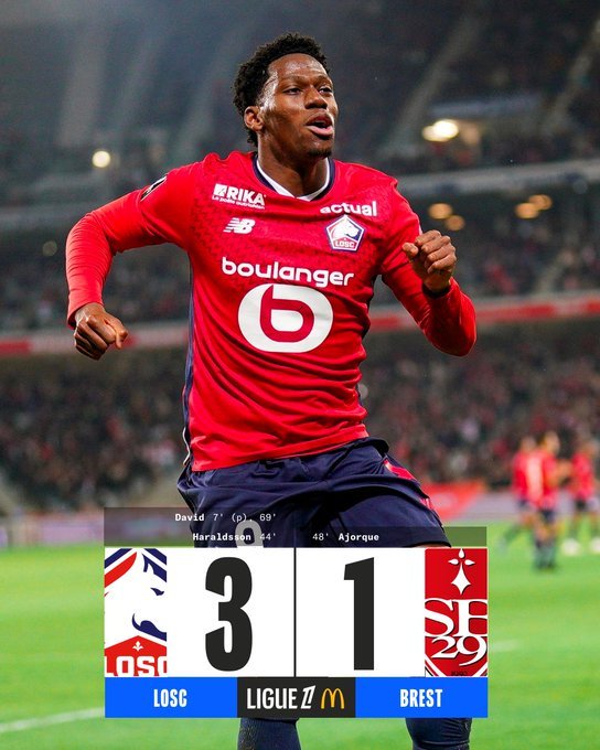 Με το…καλημέρα στην αναμέτρηση(6’) η Λιλ έκανε το 1-0 με εύστοχη εκτέλεση πέναλτι του Ντέιβιντ και στο 45’ ο Χάραλντσον ανέβασε τον δείκτη του σκορ στο 2-0. Στο 48’ η Μπρεστ μείωσε σε 2-1 με τον Αζόρκ και στο 69’ ο Ντέιβιντ με το δεύτερο προσωπικό του τέρμα στο ματς διαμόρφωσε το τελικό 3-1.
