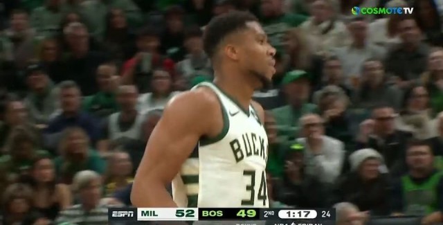 Στα 1:37 λεπτά πριν από τη λήξη και με τους Μιλγουόκι Μπακς πίσω στο σκορ, με ένα πόντο διαφορά, απέναντι στους Μπόστον Σέλτικς, ο Γιάννης Αντετοκούνμπο αστόχησε σε τρίποντο, για να ακολουθήσει εύστοχο σουτ τριών πόντων του Αλ Χόρφορντ, που έδωσε προβάδισμα τεσσάρων πόντων στην ομάδα της Βοστώνης.