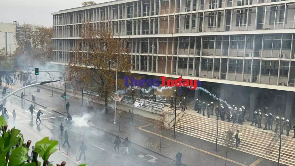 Με αφορμή τη σύλληψη 112 ατόμων που συμμετείχαν στην πορεία μνήμης για τη δολοφονία του Αλέξη Γρηγορόπουλου, σημειώθηκε ένταση, το μεσημέρι του Σαββάτου, έξω από τα δικαστήρια της Θεσσαλονίκης.