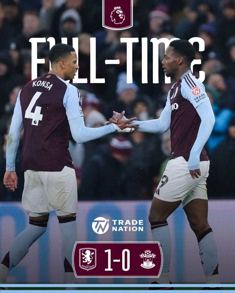 Η Άστον Βίλα κέρδισε με 1-0 τη Σαουθάμπτον, πήρε το δεύτερο διαδοχική της τρίποντο και βρέθηκε στην 5η θέση, η οποία ίσως και να δώσει εισιτήριο για το Τσάμπιονς Λιγκ. Σταθερά τελευταίοι οι «Άγιοι».