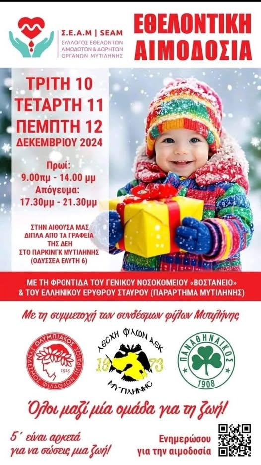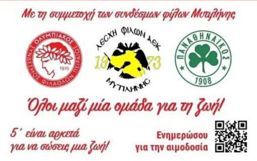 Η ΛΕΣΧΗ ΦΙΛΩΝ ΑΕΚ ΜΥΤΙΛΗΝΗΣ ΣΕ ΣΥΝΕΡΓΑΣΙΑ ΜΕ ΤΟΝ ΣΥΛΛΟΓΟ ΑΙΜΟΔΟΤΩΝ ΜΥΤΙΛΗΝΗΣ ΔΙΟΡΓΑΝΩΝΟΥΝ ΑΙΜΟΔΟΣΙΑ ΚΑΙ ΜΕ ΤΗ ΣΥΜΜΕΤΟΧΗ ΤΩΝ ΣΥΝΔΕΣΜΩΝ ΟΠΑΔΩΝ ΠΑΟ , ΟΣΦΠ.