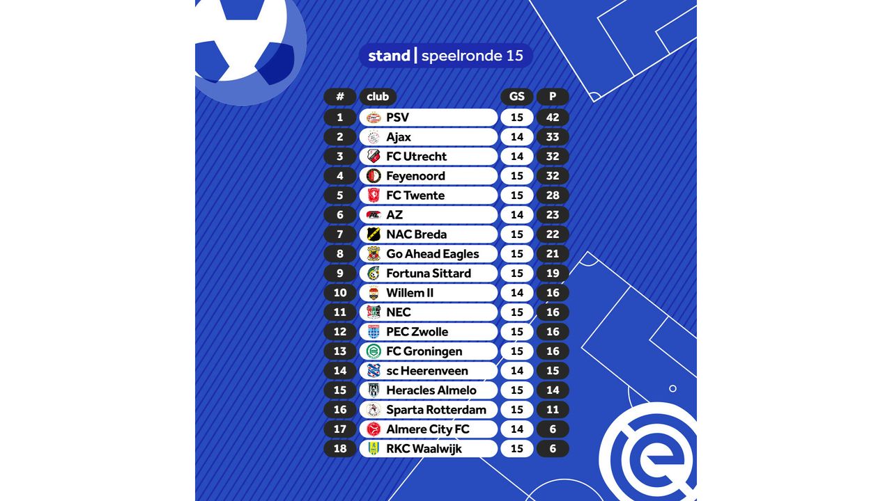 EREDIVISIE- 15η ΑΓΩΝΙΣΤΙΚΗ