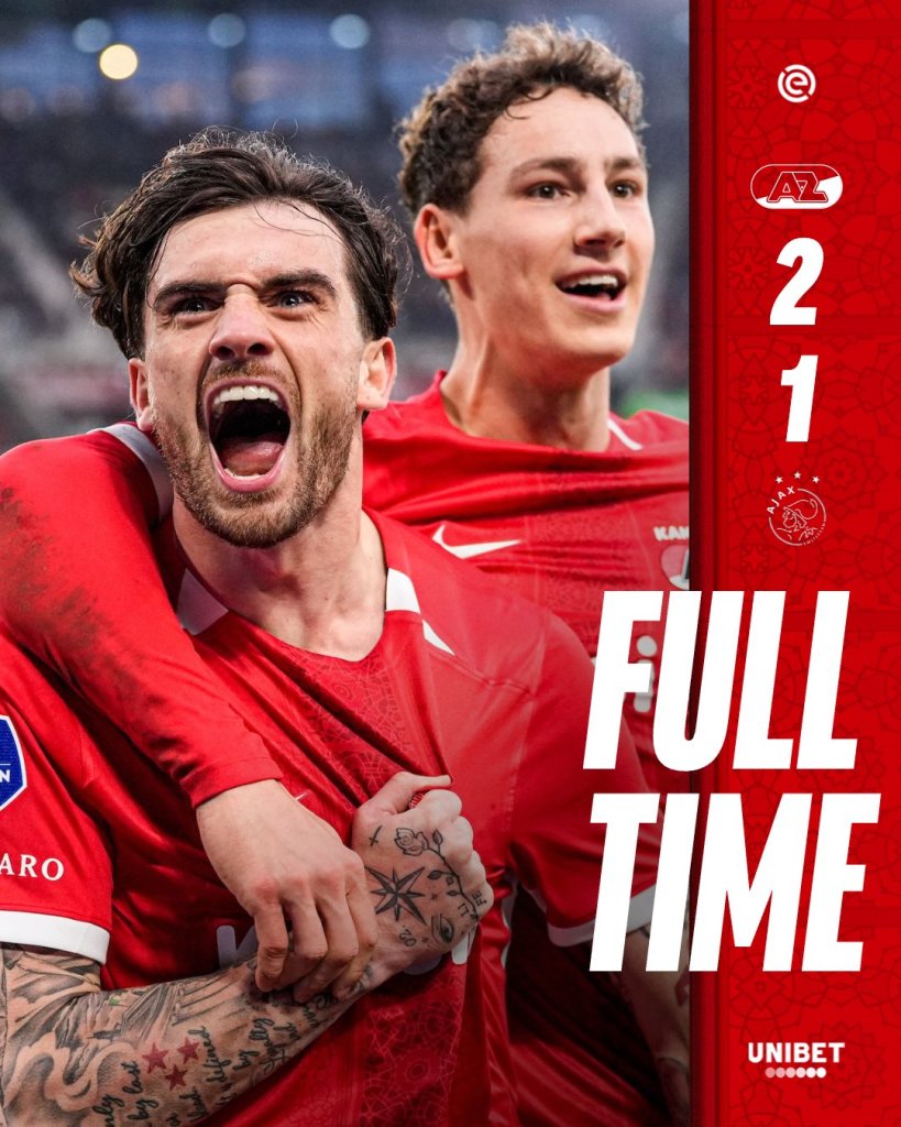 Στο AFAS Stadion έλαβε τέλος το αήττητο σερί 12 αγωνιστικών του Άγιαξ, μιας και η Άλκμααρ λύγισε 2-1 την ομάδα του Άμστερνταμ. Με το τρίποντο αυτό, η Άλκμααρ πλησίασε στους δυο βαθμούς την πέμπτη Τβέντε. Στο 34ο λεπτό, οι γηπεδούχοι έχασαν μεγάλη ευκαιρία να ανοίξουν το σκορ, όταν ο Ρούμπεν Φαν Μπόμελ σημάδεψε το δοκάρι της εστίας του Άγιαξ. Η Άλκμααρ είχε νέα καλή στιγμή, στο 43', με τον Πόκου, αλλά, ο τερματοφύλακας Πασβίρ κράτησε ανέπαφη την εστία των φιλοξενούμενων. Στα πρώτα λεπτά της επανάληψης, ο Φαν Μπόμελ σημάδεψε, για δεύτερη φορά, το δοκάρι και, στο 56ο λεπτό, ο Άγιαξ σκόραρε, με τον Βέγκχορστ, αλλά, το γκολ ακυρώθηκε με χρήση VAR. Στη συνέχεια, η Άλκμααρ κατάφερε να βρει δυο γκολ, από ισάριθμες ασίστ του Κουπμάινερς, σε διάστημα εννέα λεπτών. Στο 65', ο Πάροτ, με προβολή, έκανε το 1-0 και, τέσσερα λεπτά αργότερα, ο Άγιαξ είδε να του ακυρώνεται, με χρήση VAR, και δεύτερο γκολ. Στο 76' ο Κουπμάινερς εκτέλεσε κόρνερ, ο Πασβίρ έκανε κακή έξοδο και ο Λάχντο, με κεφαλιά, έκανε το 2-0 για την Άλκμααρ. Ο Μίκα Γκοντς μείωσε, για λογαριασμό του Άγιαξ, στο 81ο λεπτό, αλλά, μέχρι το φινάλε της αναμέτρησης, οι φιλοξενούμενοι δεν κατέγραψαν σουτ στον στόχο.