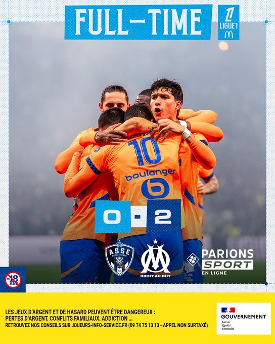 Η Μαρσέιγ κέρδισε με 2-0 τη Σεντ Ετιέν στο παραδοσιακό ντέρμπι της Γαλλίας και μείωσε τη διαφορά της από την πρωτοπόρο Παρί στους πέντε βαθμούς.