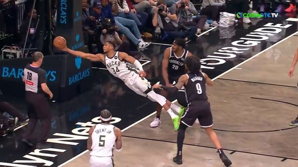 Στα τελευταία δευτερόλεπτα της πρώτης περιόδου, στο Νετς-Μπακς, ο Γιάννης Αντετοκούνμπο έδειξε ότι διαθέτει και... προσόντα τερματοφύλακα.