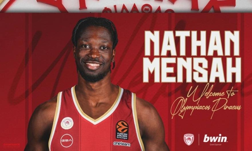 «Η ΚΑΕ Ολυμπιακός ανακοινώνει την απόκτηση του Νέιθαν Μενσά. Ο 26χρονος σέντερ από την Γκάνα υπέγραψε με την ομάδα μας συμβόλαιο μέχρι το τέλος της σεζόν, με οψιόν ανανέωσης για έναν ακόμη χρόνο.