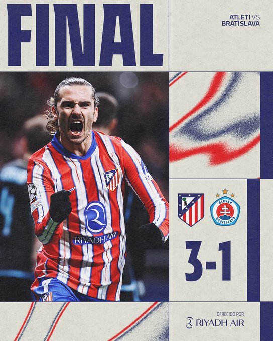 Η Ατλέτικο έκανε το καθήκον της κόντρα στη Σλόβαν, την κέρδισε με 3-1 κι ανέβηκε στους 12 βαθμούς. Στο μηδέν κι εκτός Ευρώπης οριστικά οι Σλοβάκοι.