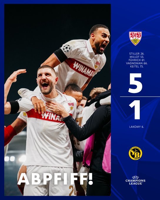 Ζωντανή στη μάχη για την είσοδο στην 24άδα έμεινε η Στουτγκάρδη, η οποία κέρδισε με 5-1 τη Γιουνγκ Μπόις κι ανέβηκε στους 7 βαθμούς. Στο μηδέν κι εκτός συνέχειας οριστικά οι Ελβετοί.